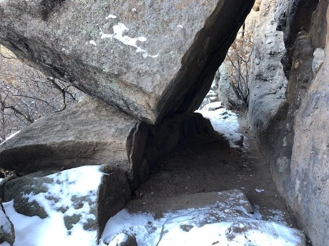 In a cave with the dirt as the floor; she’s surprised